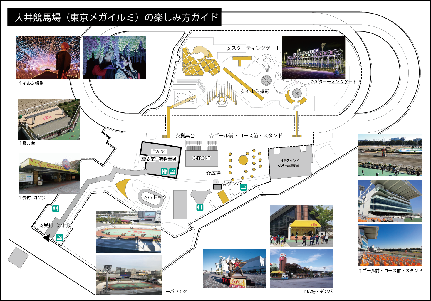 ・11:00-16:30はコスプレイヤー占有時間として撮影、交流、ダンパが出来ます。16:30-21:00は東京メガイルミ関係者(競馬場関係者、プレオープン招待者)との共有時間となります。共有時間のコスプレ撮影は可能ですが、招待者が気になる方は私服での撮影もお勧めします。